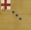 (17ECW-Gell) Civil War flag of a 2nd Captain in Colonel Sir John Gell's Regiment of Foot. Gold silk with painted stars and an appliqued canton. 1.83m high x 1.98m wide. |